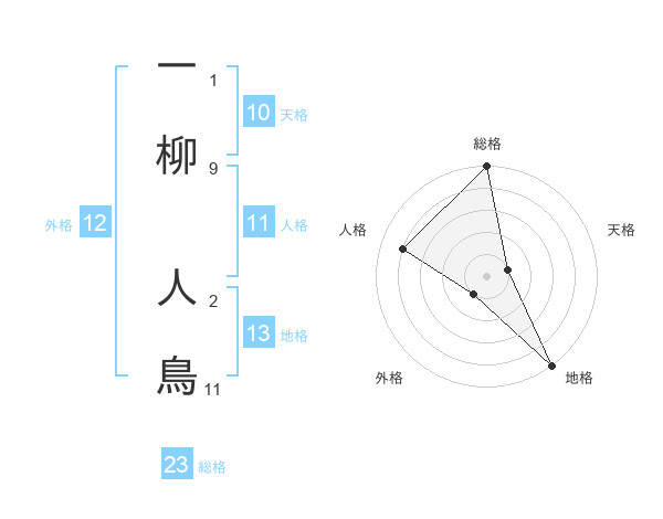 一柳 人鳥さんを姓名の画数から五運を鑑定