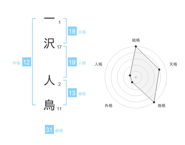 一沢 人鳥さんを姓名の画数から五運を鑑定