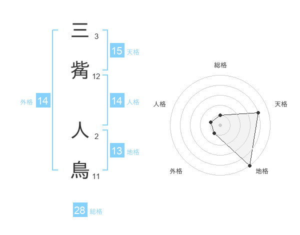 三觜 人鳥さんを姓名の画数から五運を鑑定