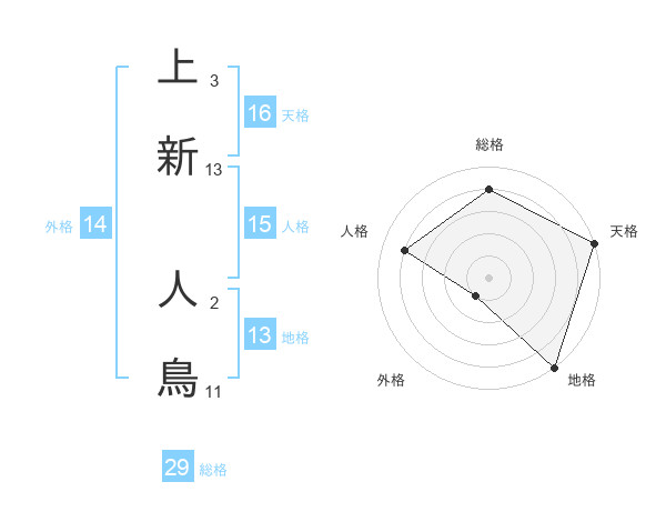 上新 人鳥さんの地格は13画の5点!