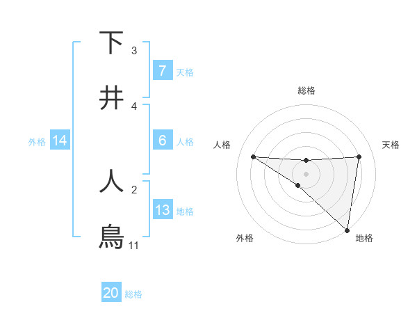 下井 人鳥さんを姓名の画数から五運を鑑定