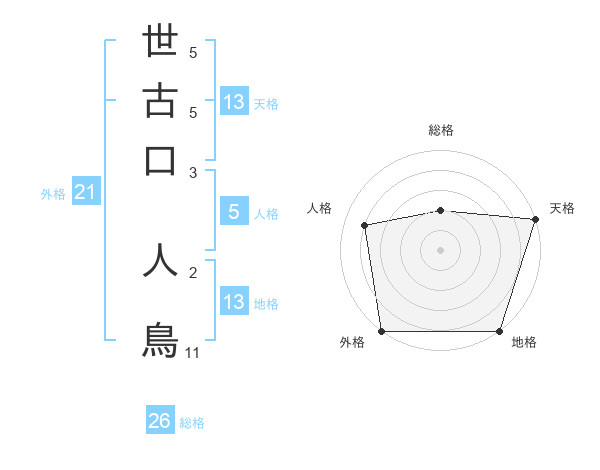 世古口 人鳥さんの総格は26画の2点!