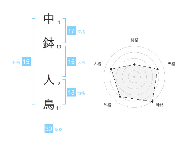 中鉢 人鳥さんを姓名の画数から五運を鑑定
