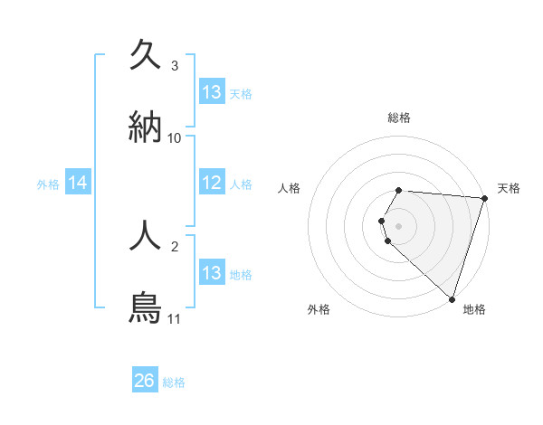 久納 人鳥さんを姓名の画数から五運を鑑定