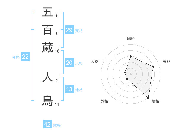 五百蔵 人鳥さんを姓名の画数から五運を鑑定