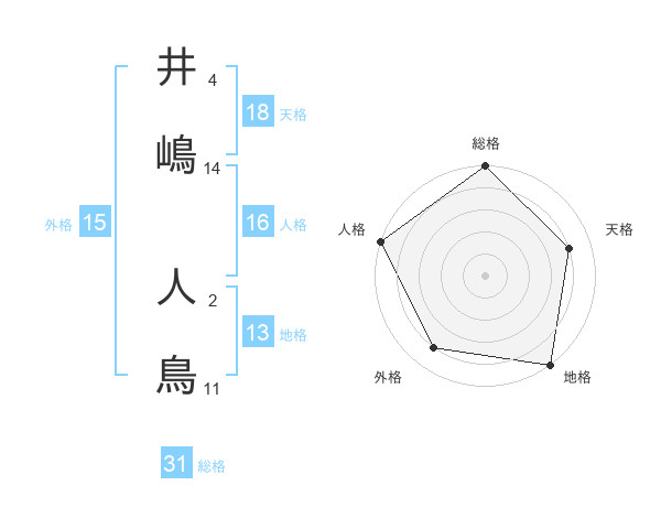 井嶋 人鳥さんを姓名の画数から五運を鑑定