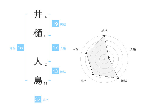 井樋 人鳥さんの総格は32画の5点!
