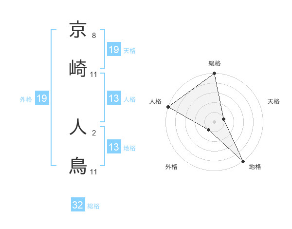 京崎 人鳥さんの総格は32画の5点!