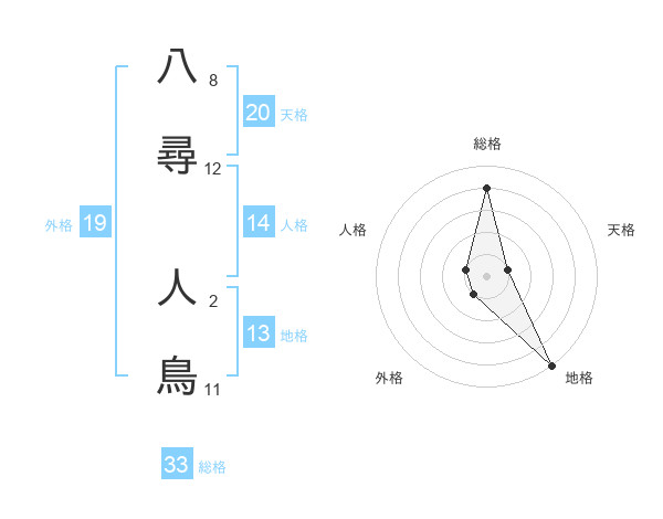 八尋 人鳥さんの総格は33画の4点!