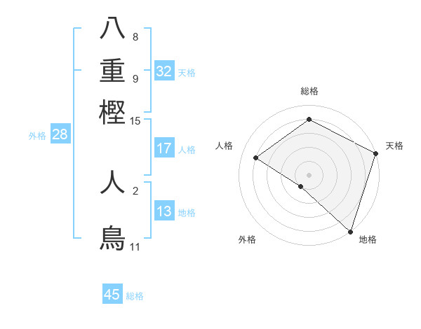 八重樫 人鳥さんを姓名の画数から五運を鑑定