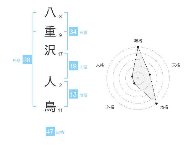 八重沢 人鳥さんを姓名の画数から五運を鑑定