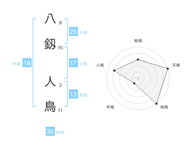 八釼 人鳥さんの地格は13画の5点!