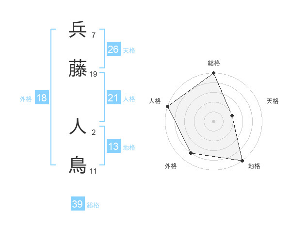 兵藤 人鳥さんを姓名の画数から五運を鑑定