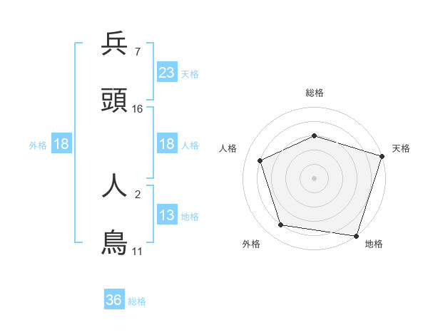 兵頭 人鳥さんの総格は36画の3点!