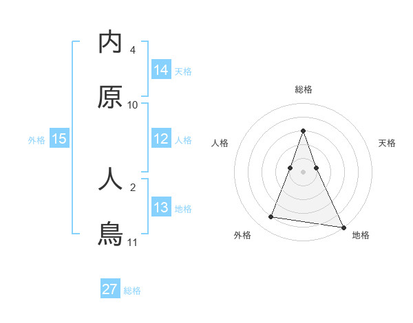 内原 人鳥さんの総格は27画の3点!
