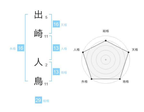 出崎 人鳥さんを姓名の画数から五運を鑑定