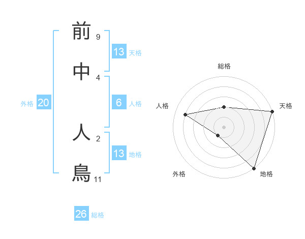前中 人鳥さんを姓名の画数から五運を鑑定