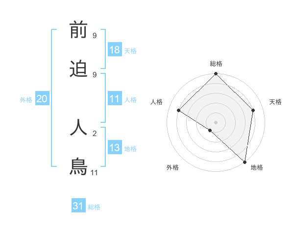 前迫 人鳥さんを姓名の画数から五運を鑑定