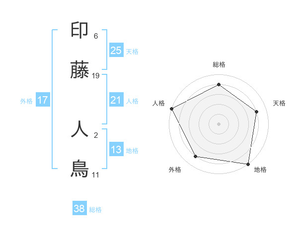 印藤 人鳥さんの総格は38画の4点!