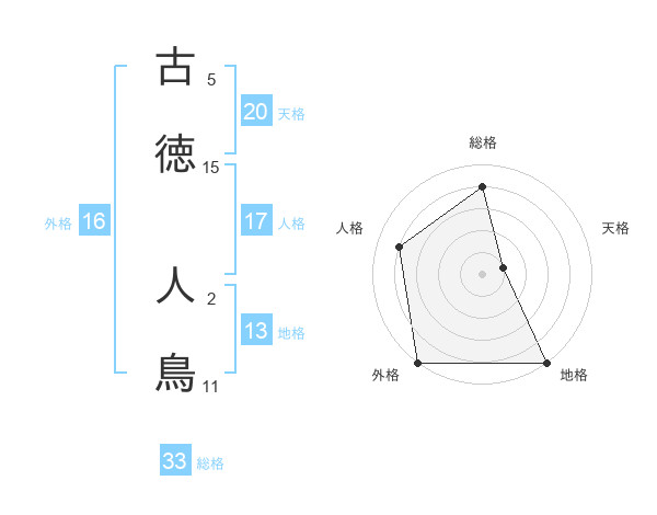 古徳 人鳥さんを姓名の画数から五運を鑑定
