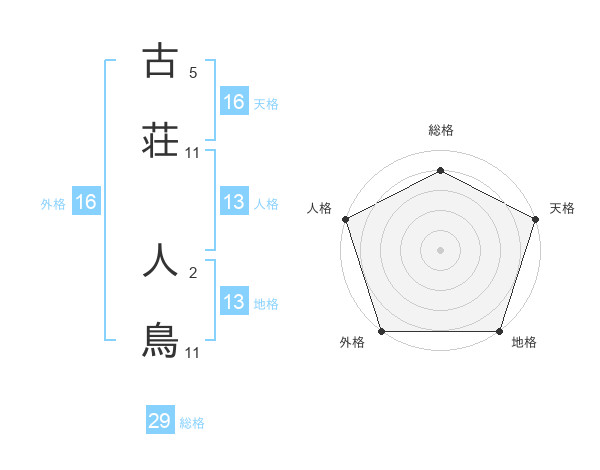 古荘 人鳥さんの地格は13画の5点!