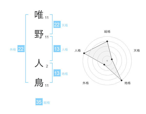 唯野 人鳥さんを姓名の画数から五運を鑑定