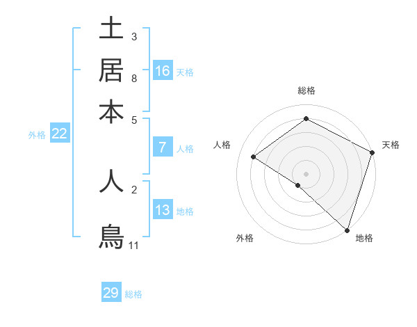 土居本 人鳥さんの地格は13画の5点!