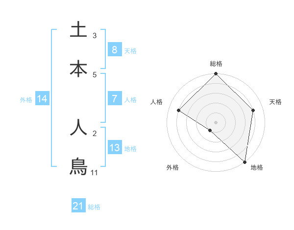 土本 人鳥さんの総格は21画の5点!