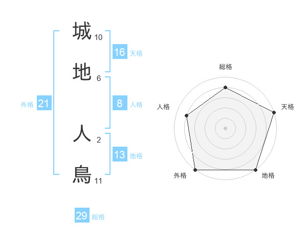 城地 人鳥さんの総格は29画の4点!