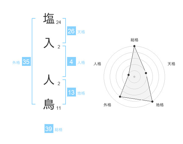 塩入 人鳥さんを姓名の画数から五運を鑑定