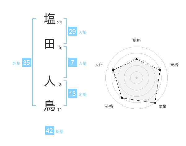 塩田 人鳥さんの総格は42画の3点!