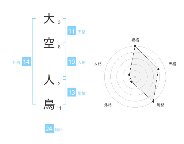 大空 人鳥さんの外格は14画の1点!