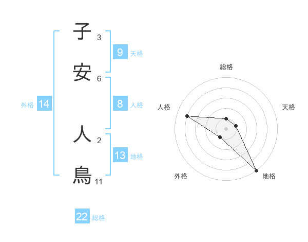 子安 人鳥さんの総格は22画の1点!