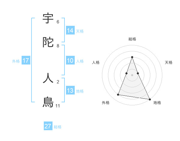 宇陀 人鳥さんの総格は27画の3点!