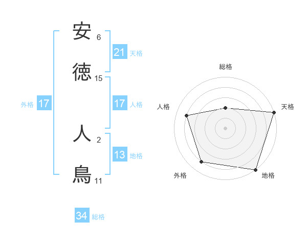 安徳 人鳥さんの外格は17画の4点!