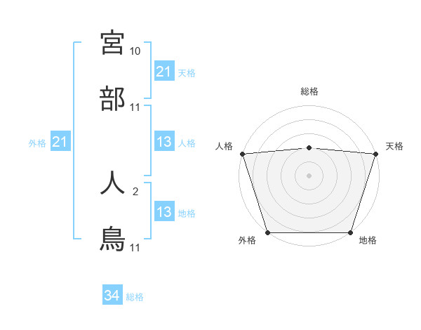宮部 人鳥さんを姓名の画数から五運を鑑定