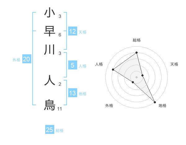 小早川 人鳥さんを姓名の画数から五運を鑑定