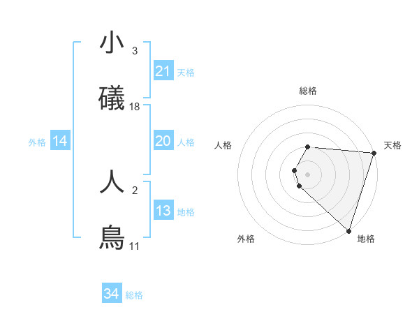 小礒 人鳥さんを姓名の画数から五運を鑑定