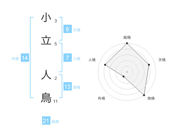 小立 人鳥さんの総格は21画の5点!