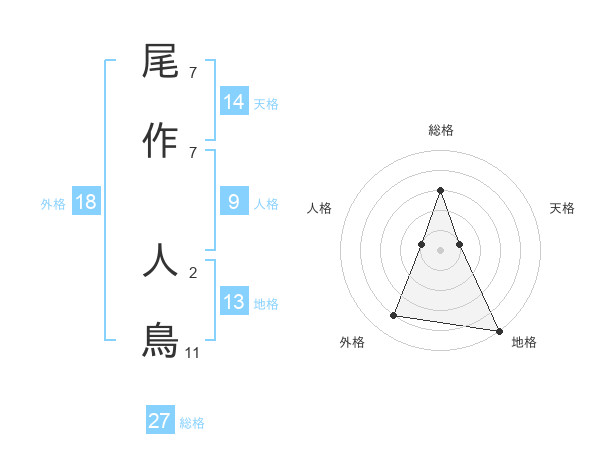尾作 人鳥さんの総格は27画の3点!