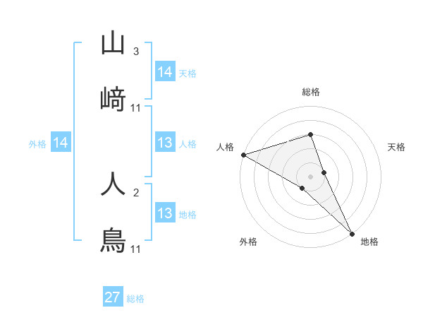 山﨑 人鳥さんの総格は27画の3点!