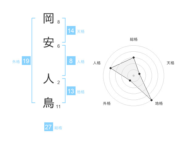 岡安 人鳥さんを姓名の画数から五運を鑑定