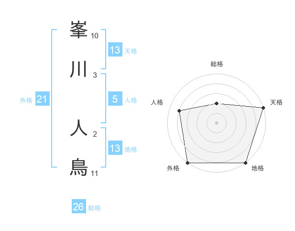 峯川 人鳥さんの総格は26画の2点!