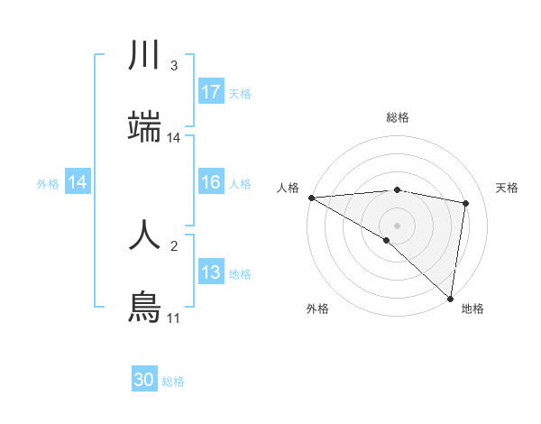 川端 人鳥さんの天格は17画の4点!