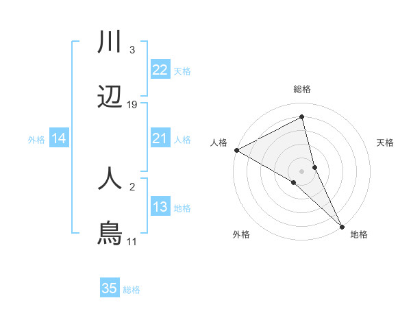 川辺 人鳥さんの総格は35画の4点!