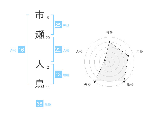 市瀬 人鳥さんの総格は38画の4点!