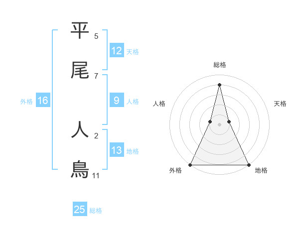 平尾 人鳥さんの総格は25画の4点!
