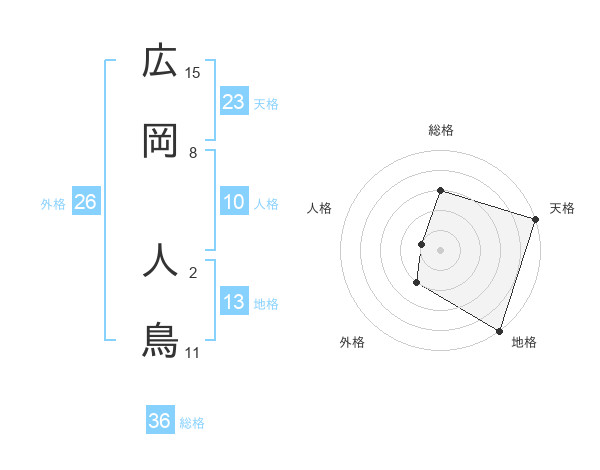 広岡 人鳥さんの地格は13画の5点!