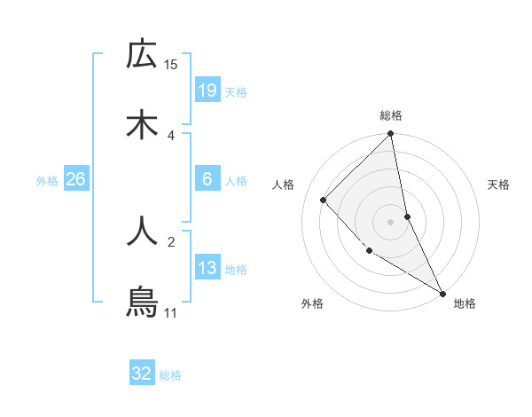 広木 人鳥さんの総格は32画の5点!