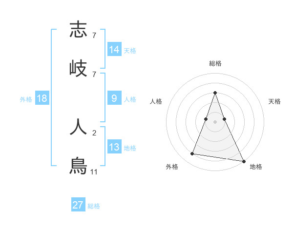 志岐 人鳥さんの総格は27画の3点!